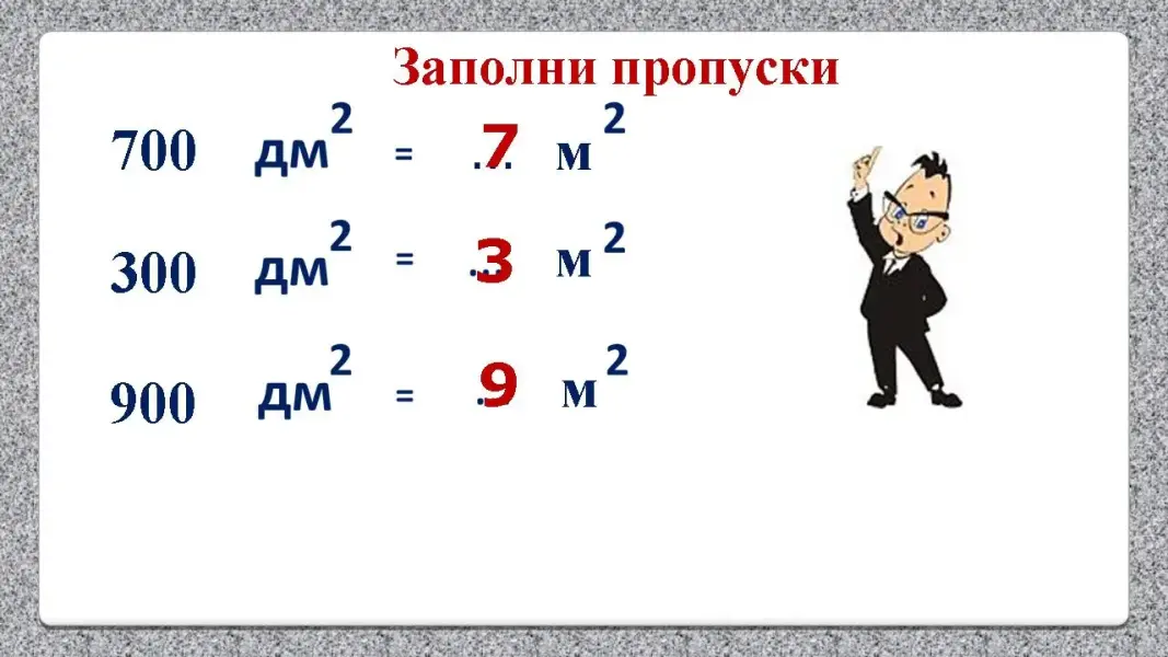 Ученик: 1 дм2 = 100 см2