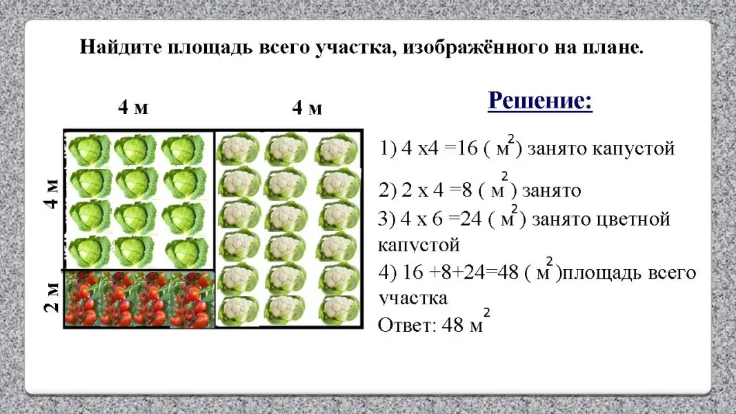 Учитель: Давайте найдём по плану площадь огорода.