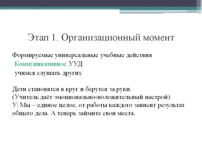 Учитель вместе с учащимся определяет основные цели урока. (Регулятивные УУД) Каждый урок имеет эпиграф, смысл которого раскрывается в конце урока. Мотивация на работу подкрепляется в круге. Дети встают в круг, берутся за руки. Задача учителя, чтобы каждый ребенок чувствовал поддержку, доброе отношение к нему. Чувство единения с классом, учителем помогает создать атмосферу доверия, взаимопонимания.(Личностные УУД)