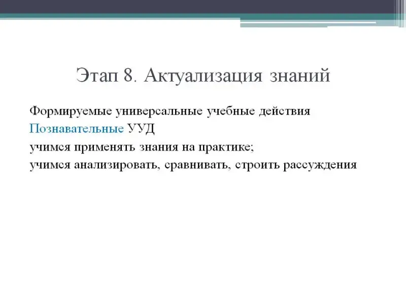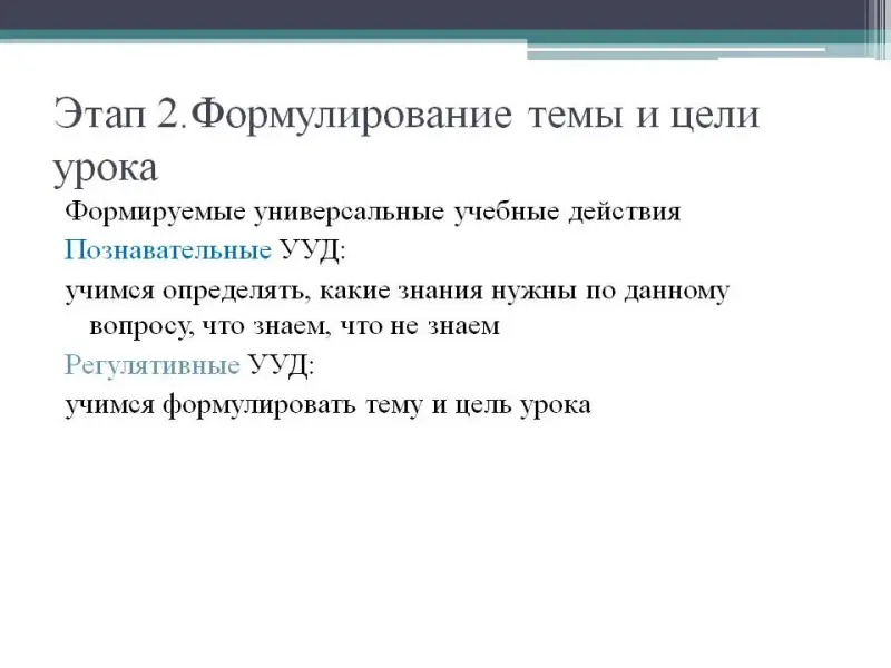 На втором этапе урока происходит формирование познавательных и регулятивных универсальных учебных действий.
