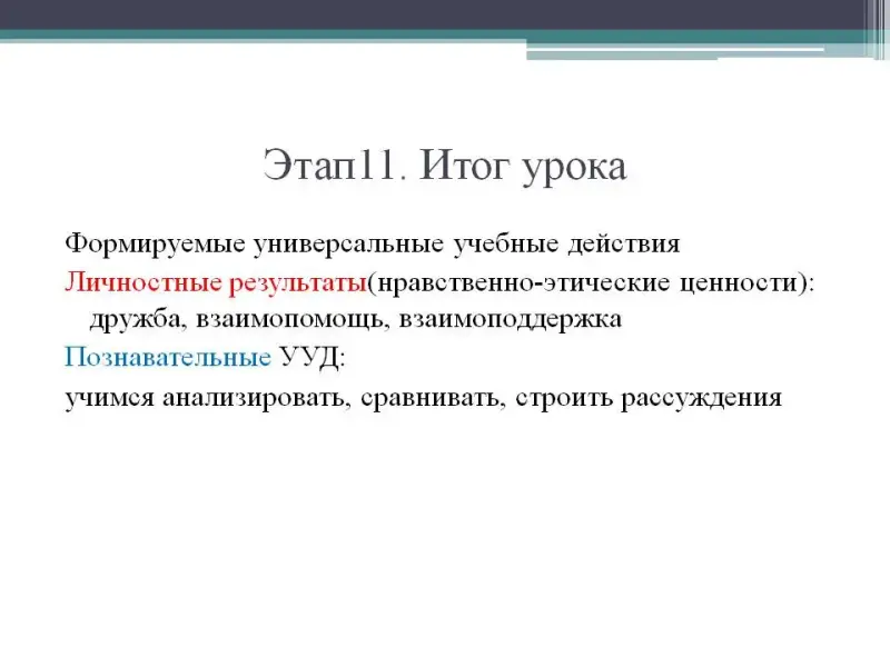 Третий этап урока формирует личностные и коммуникативные универсальные учебные действия.