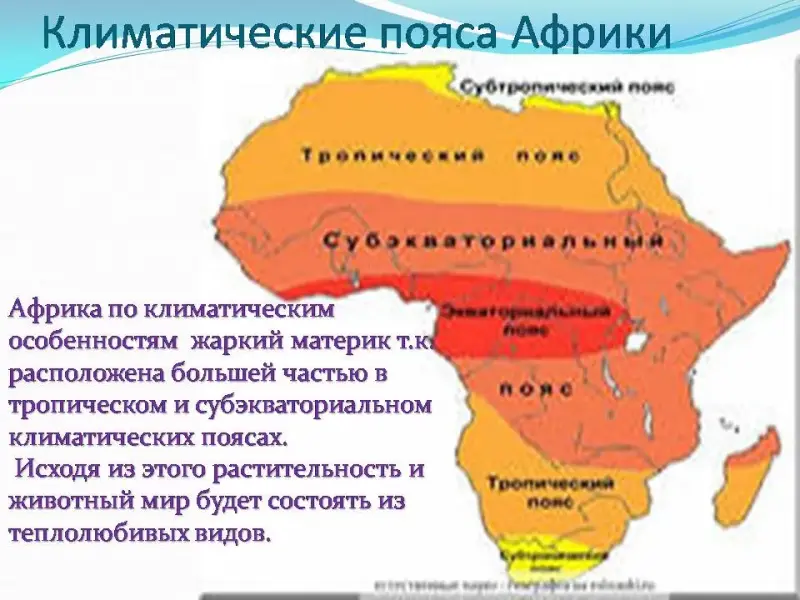 Материк Африка расположен в экваториальном, субэкваториальном, тропическом и субтропическом климатических поясах? -