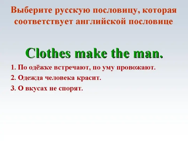 Задание 3. Выберите русскую пословицу, которая соответствует английской пословице (Слайд 9)