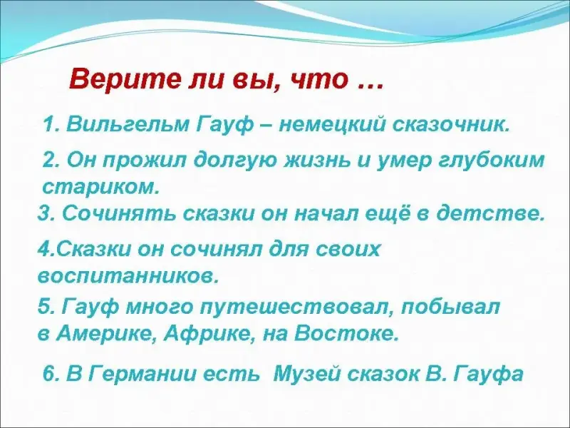 - Какие сказки Вильгельма Гауфа вы знаете?
