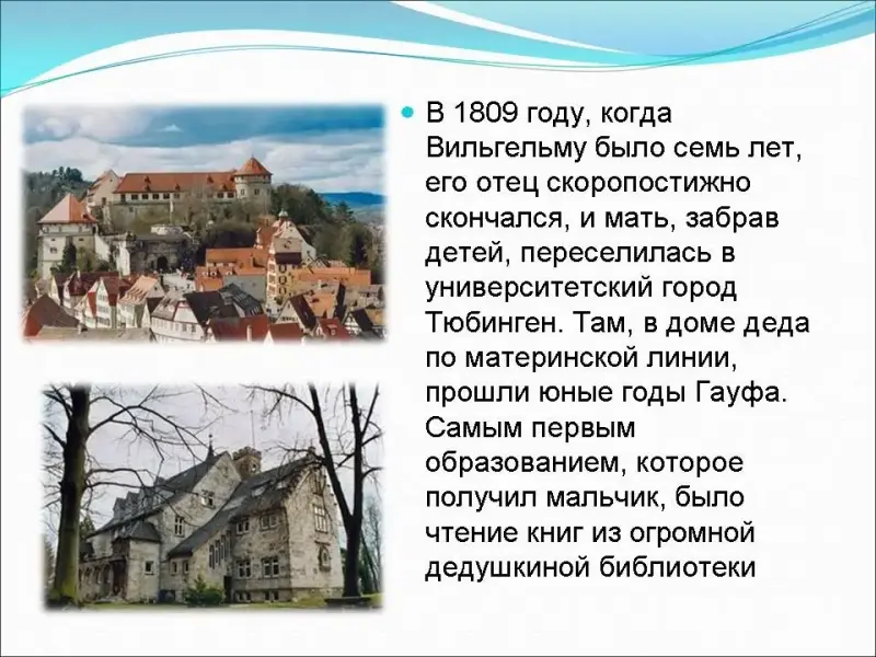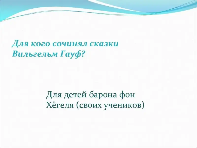 - Для кого сочинял сказки Вильгельм Гауф? Для детей барона фон Хёгеля (своих учеников)
