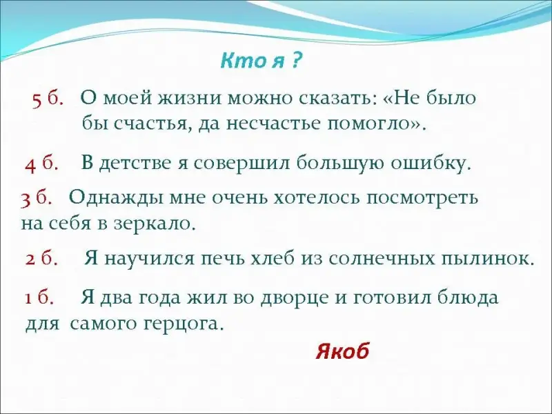 1 б. Меня спас очень добрый юноша по имени Якоб.