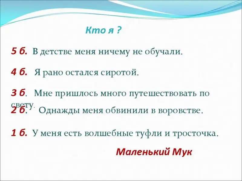 Конкурс 2. Викторина по сказке "Маленький Мук"