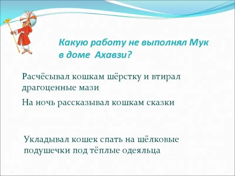 7. Какую работу не выполнял Мук в доме Ахавзи?