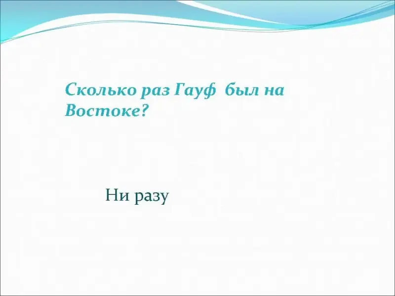 - Сколько раз Гауф был на Востоке? ( ни разу)