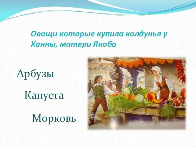 2. Овощи которые купила колдунья у Ханны, матери Якоба