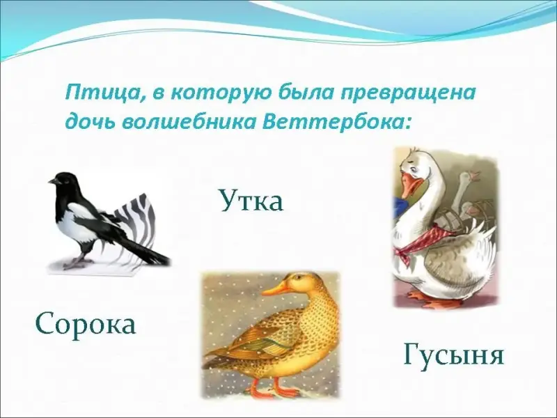 8. Птица, в которую была превращена дочь волшебника Веттербока: