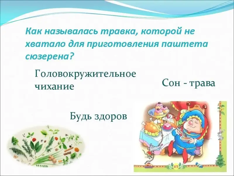 12. Как называлась травка, которой не хватало для приготовления паштета сюзерена?