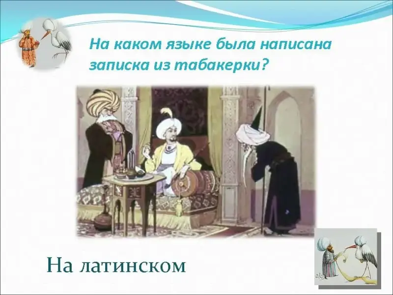6. На каком языке была написана записка из табакерки? (на латинском0