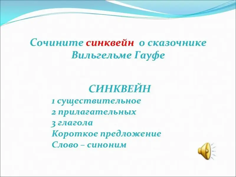 Сочините синквейн о сказочнике Вильгельме Гауфе