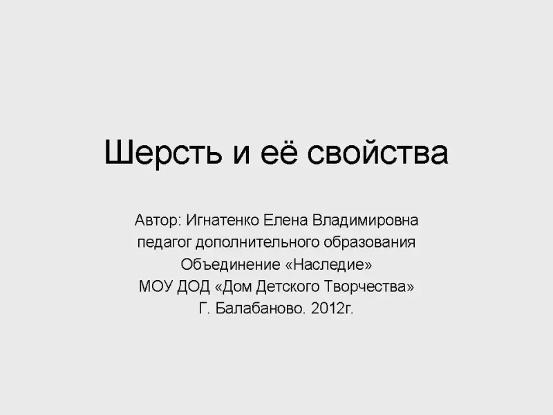 Презентация "Шерсть и ее свойства" (текст Презентации в Приложении 2).