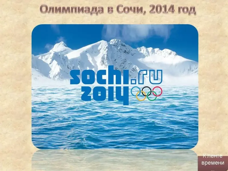 Кубань - жемчужина, любимая дочь нашей великой России. Наше южное небо - как синий девичий взгляд. В изголовье Кубани лежат Кавказские горы, у ее ног плещет морская волна. Качаются под ветром колосья пшеницы. Прямо в небо свечки-тополя и тихо шепчут свою песню. На диво хороша наша цветущая земля! И недаром удивительное сочетание бескрайних степей, горных лесов, гор, покрытых снегом, и теплых морей позволили кубанскому городу Сочи выиграть право на проведение в нем Зимней Олимпиады в 2014 г. Зимние Олимпийские игры 2014 международное спортивное мероприятие, которое пройдёт в Сочи с 7 по 23 февраля 2014 года. На территории России Олимпийские игры пройдут во второй раз (до этого в Москве в 1980 году прошли XXII летние Олимпийские игры), и впервые - зимние Игры. По окончании Олимпийских игр на тех же объектах будут проведены зимние Паралимпийские игры. (на 24 слайде можно просмотреть фильм, предварительно скачав его по указанной ссылке) (Возврат к ленте времени, слайд 8) |