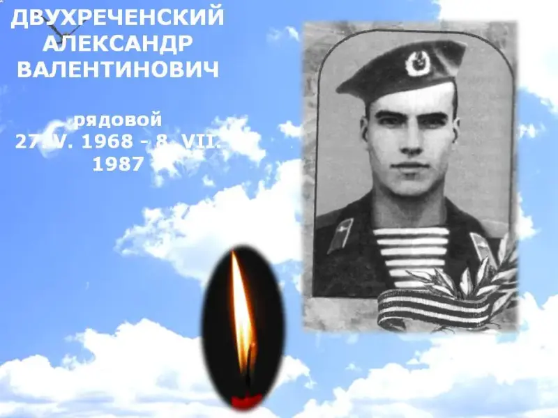 Александр Двухреченский. Родился в г. Куйбышеве Новосибирской области. На действительную военную службу был призван 15 октября 1986 г. С 13 мая 1987 г. служил в Республике