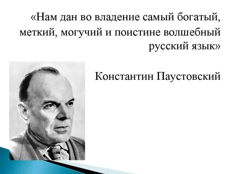Эпиграф к уроку. "Нам дан во владение самый богатый, меткий, могучий и поистине волшебный русский язык" (Константин Паустовский) |