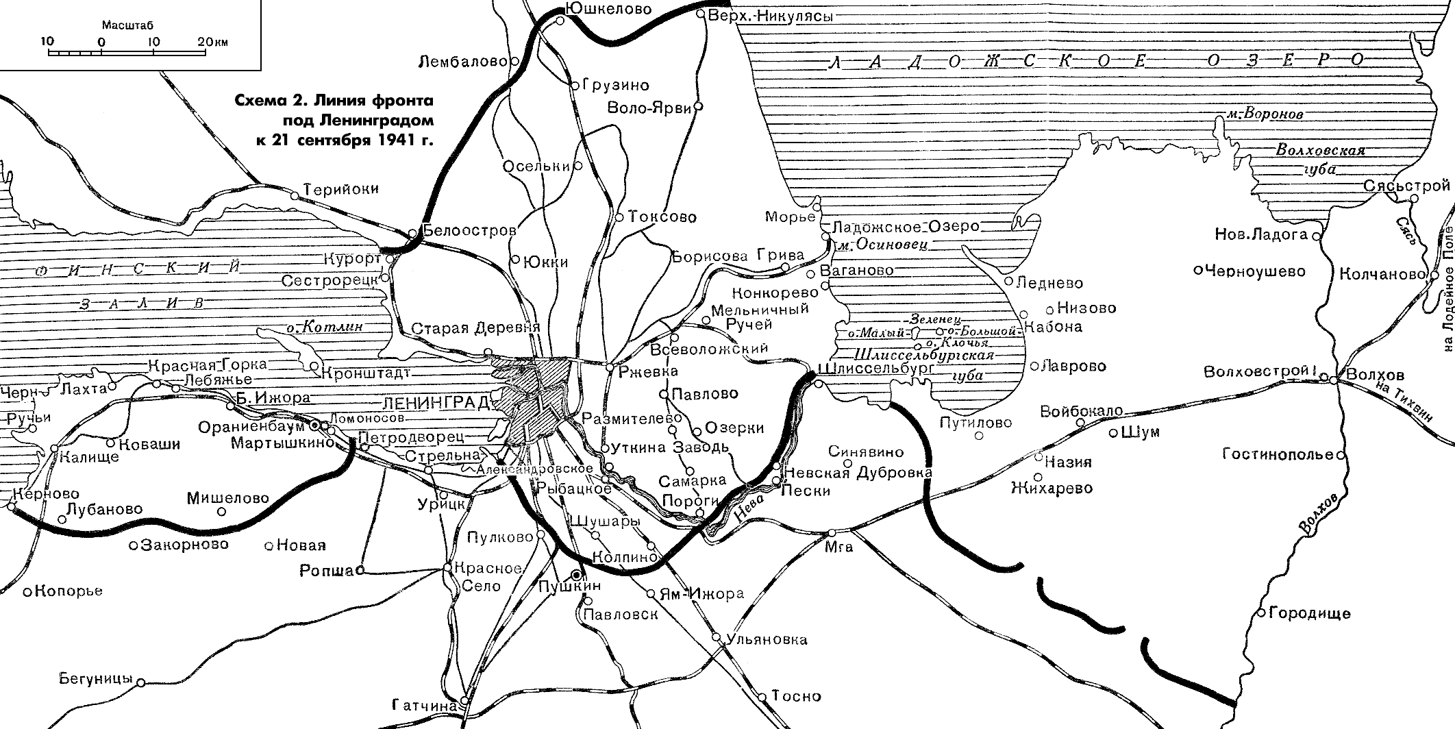 Учитель. В конце августа 1941 года немецкие части прорвали Лужский оборонительный рубеж и устремились к Ленинграду. 8 сентября противник вышел к Ладожскому озеру, захватил Шлиссельбург, взяв под контроль исток Невы, и блокировал Ленинград с суши. Этот день считается днем начала блокады. Были разорваны все железнодорожные, речные и автомобильные коммуникации. Сообщение с Ленинградом теперь поддерживалось только по воздуху и Ладожскому озеру. С севера город блокировали финские войска, которые были остановлены 23-й армией у Карельского укреплённого района. Сохранилось лишь единственное железнодорожное сообщение с побережьем Ладожского озера с Финляндского вокзала - "Дорога жизни". Началась 872-дневная блокада города <Рисунок 3>. Немецко-фашистские войска планировали уничтожить сперва Ленинград, потом Москву. [2]