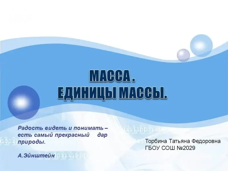 - Компьютерная презентация "Масса. Единицы измерения массы. Измерение массы тела на рычажных весах".