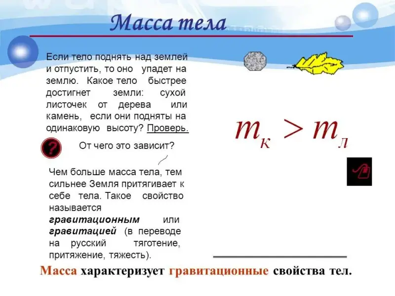 Объявление темы урока: "Масса тела. Единицы массы. Измерение массы тела". Формулировка целей и задач урока.