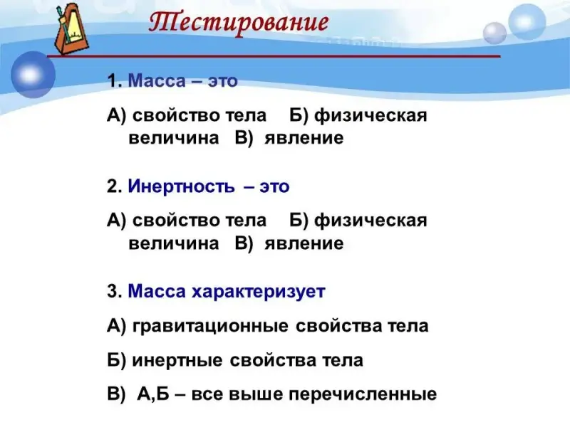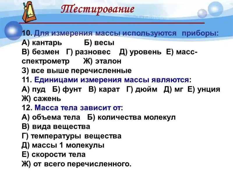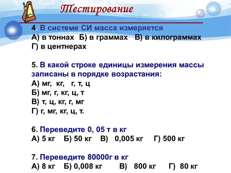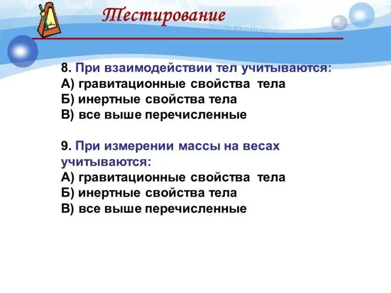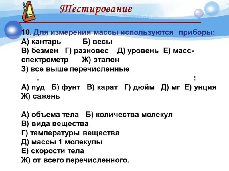 | 6. Определение массы тела. Контрольные задания. | К | Тест. | http://www.fcior.edu.ru/card/1… |