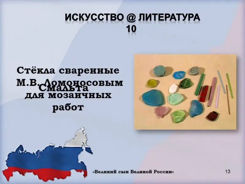 Стёкла сваренные М.В. Ломоносовым для мозаичных работ