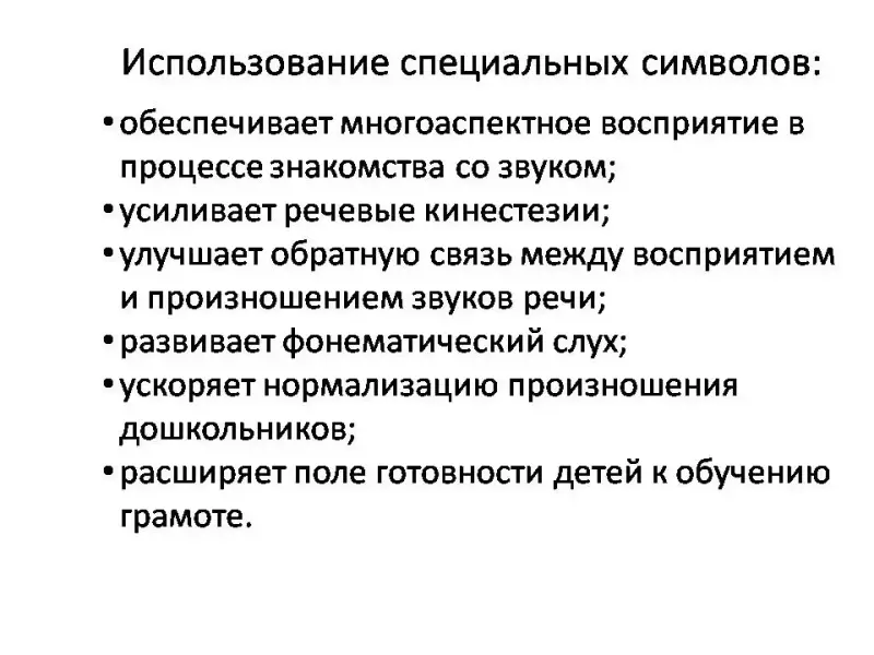 В работе использовалась вспомогательная символика, и все упражнения в звуковом анализе и синтезе проводились только на материале правильно произносимых звуков.