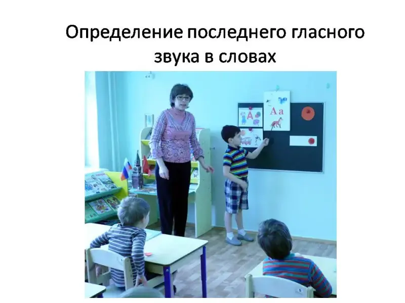 - Определение последнего гласного звука в словах (лисА, пальтО, скалА)