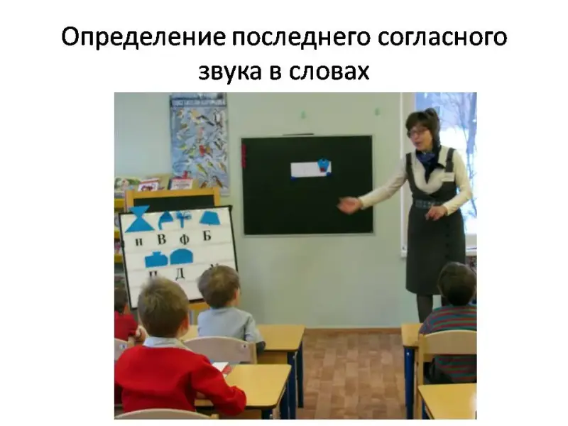 - Определение последнего согласного звука в словах (доМ, коТ )