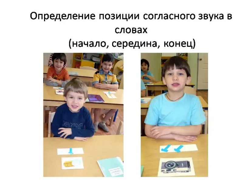 - Определение позиции согласного звука в словах (начало, середина, конец)