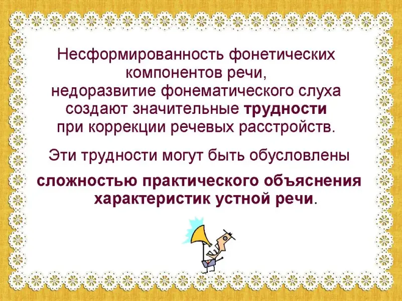 Несформированность фонетических компонентов речи, а также недоразвитие фонематического слуха создают значительные трудности при коррекции речевых расстройств. Эти трудности могут быть обусловлены сложностью практического объяснения характеристик устной речи. Компьютер же предоставляет широкие возможности использования различных анализаторных систем в процессе выполнения и контроля над деятельностью. (слайд 4)