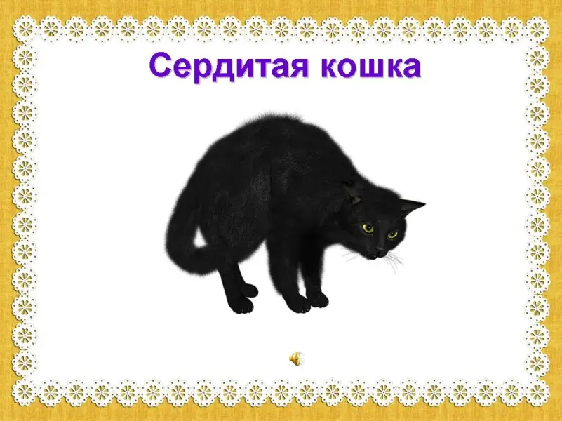 Артикуляционную гимнастику можно провести в виде сочетания наглядного материала и музыки, (кнопка: переход по гиперссылке на презентацию 2, возврат на последнем слайде - щелчок по язычку) или (слайд 13) сделать так, чтобы язычок сам рассказывал стихи или сказку о себе и своих друзьях (использование озвученных героев). (Стих о сердитой кошке Тамары Файфель) (слайд 14)