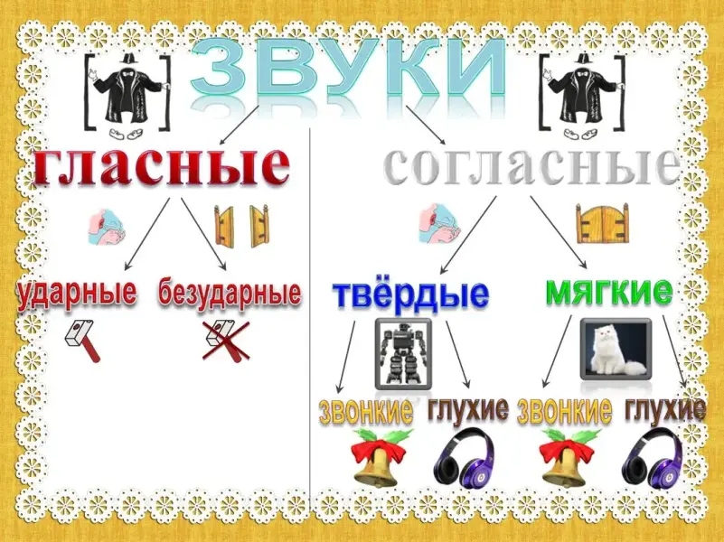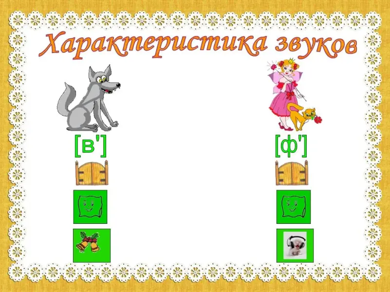 При анализе звука необходимо, чтобы ребенок самостоятельно называл все его признаки. Для этого мы выводим на экран алгоритм характеристики звука с пошаговой инструкцией. (слайд 17)