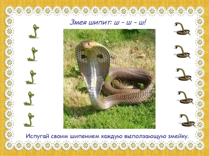 На этапе автоматизации изолированного звука мы используем анимацию для того, чтобы ребенок подольше произносил поставленный звук (испугай своим шипением каждую выползающую змейку). (слайд 18)