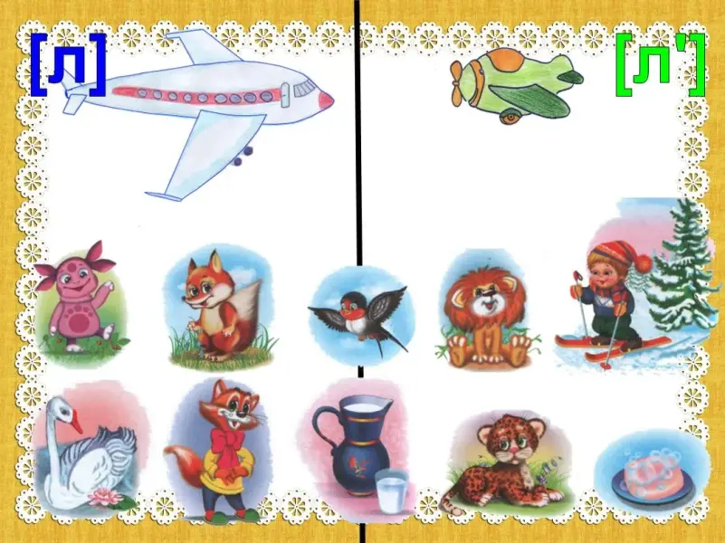 На этапе дифференциации звуков в презентации ребенок наглядно видит, чем похожи и чем отличаются звуки, (слайд 23, анимация по щелчку), он может сам распределять картинки по заданным группам, отрабатывая различия звуков на практике (слайд 24, анимация по щелчку)