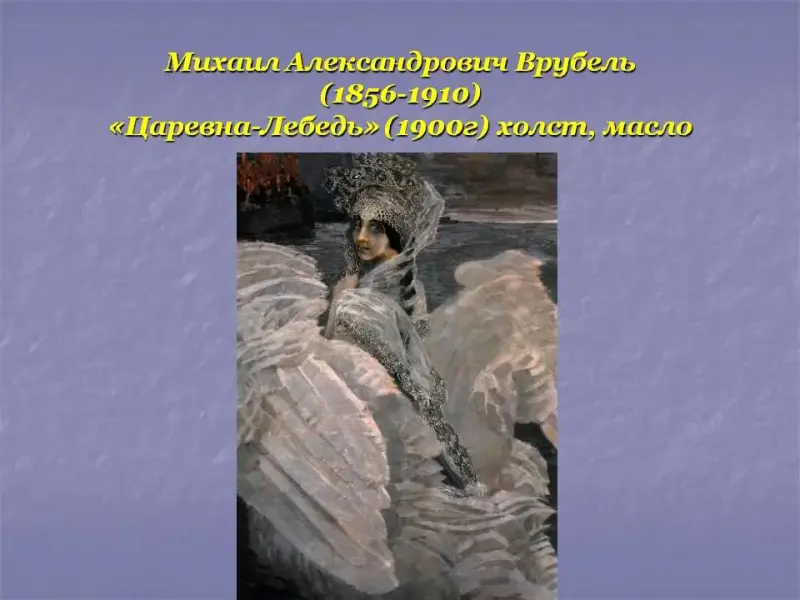 Ученик: «Царевна-Лебедь» - картина Михаила Александровича Врубеля, написанная на основе сценического образа героини оперы Н. А. Римского-Корсакова «Сказка о царе Салтане» по сюжету одноимённой