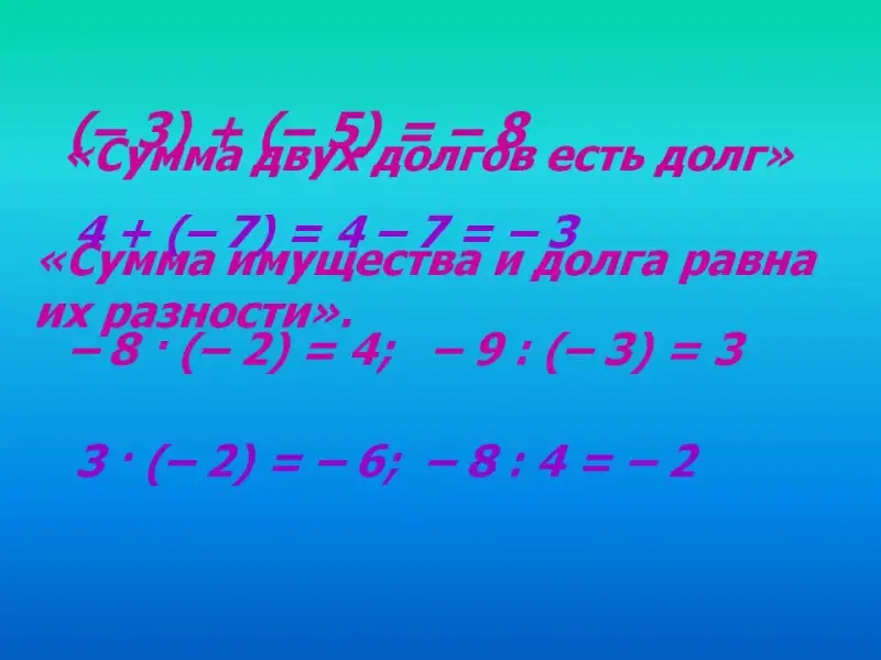 1) «Сумма двух долгов есть долг». (- 3) + (- 5) = - 8