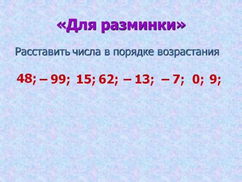 «Разминка». Устное выполнение действий с целыми числами с помощью компьютерного тренажёра «Я учусь решать примеры». Учащиеся по очереди выходят к компьютеру и выполняют действия, их ответы фиксируются.