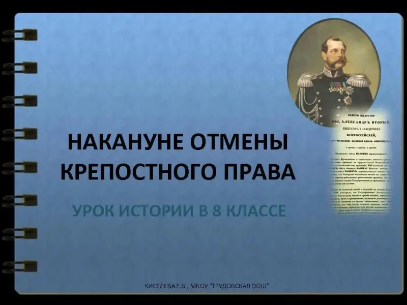 В России наступило время перемен. Вопрос об отмене крепостного права требовал решения. Существовали ли предпосылки, ускорившие этот процесс? Каковы причины отмены крепостного права. К концу урока вы сможете дать основательные и подробные ответы на эти вопросы.