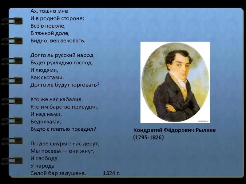 Учитель читает отрывок из стихотворения К.Ф.Рылеева (Слайд 2.):