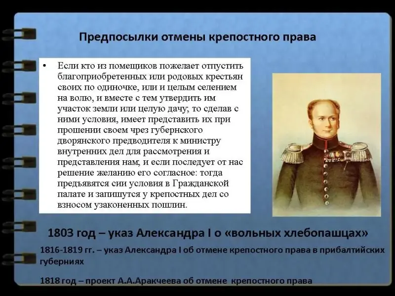 - 1803 год - указ Александра I о "вольных хлебопашцах"