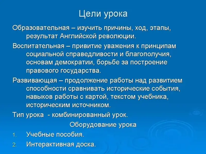 | Образовательная цель | изучить причины, ход, этапы, результат Английской буржуазной революции |