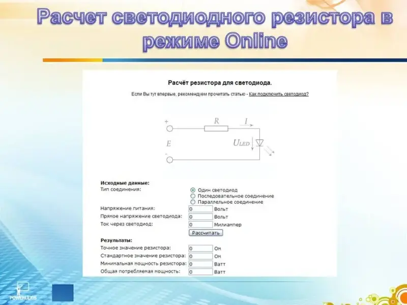 Это так же можно сделать в светодиодном калькуляторе в режиме онлайн. (Слайд 17)