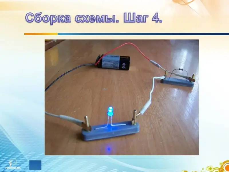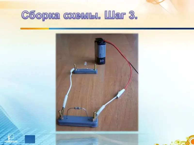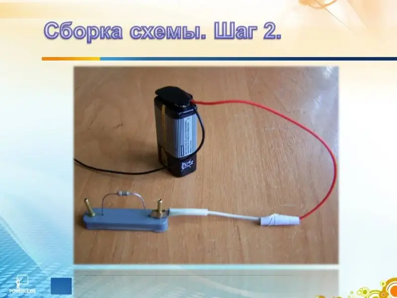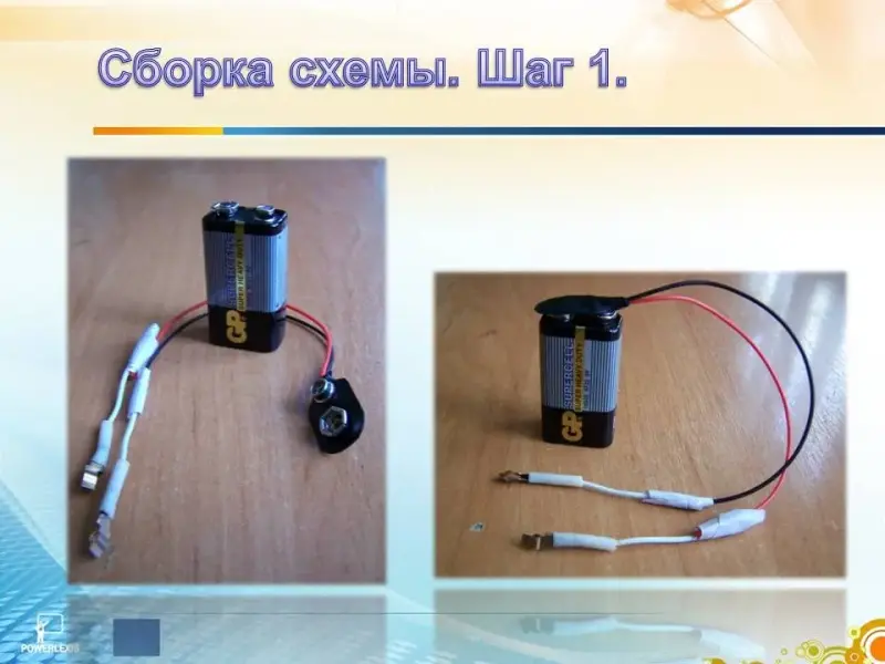 Далее соединяем батарейку и резистор. (Слайд 20)