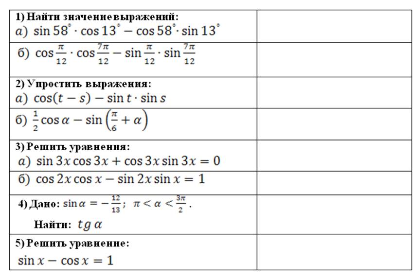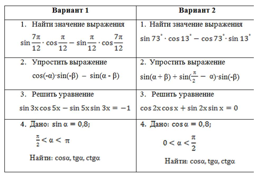 - отработка формул тригонометрии;