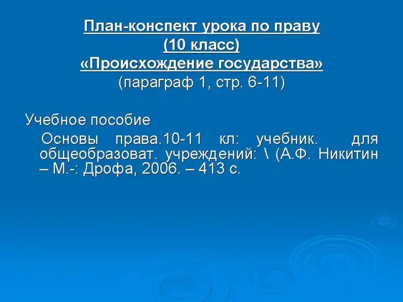 - Учебные пособия Основы права.10-11 кл: учебник.для общеобразоват. учреждений: \ А.Ф. Никитин - М.-: Дрофа, 2006. - 413 с.