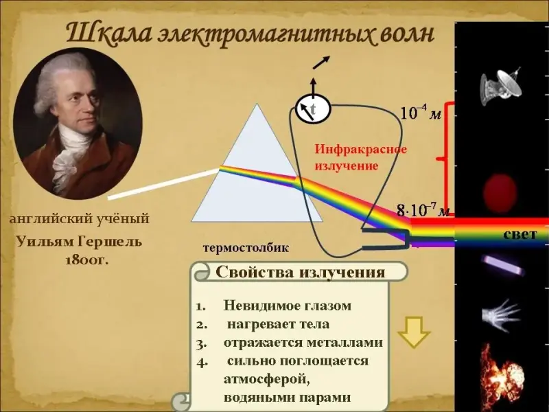 Учитель: Открытые Гершелем волны назвали инфракрасными. Длины волн инфракрасного излучения лежат в диапазоне от