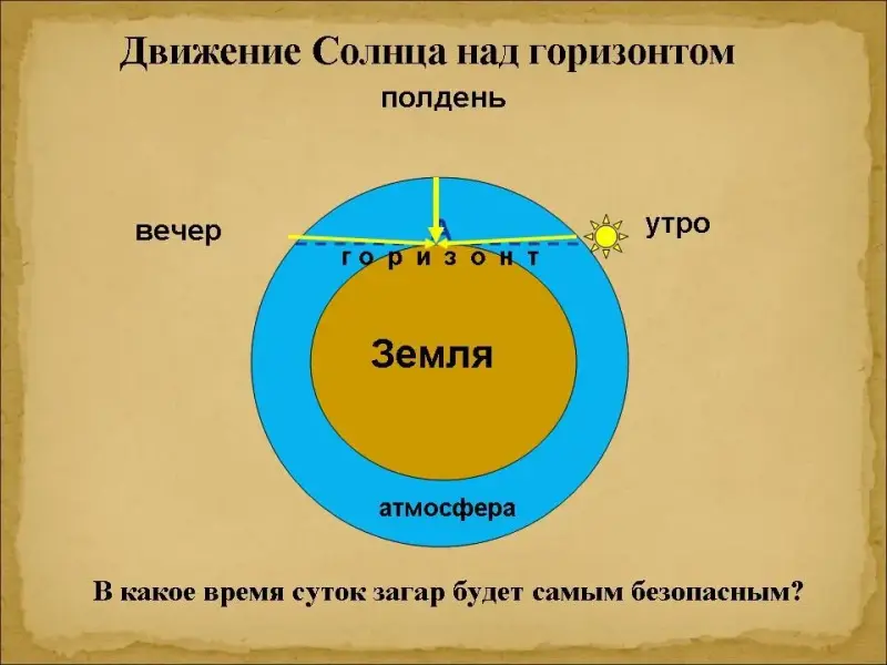 инструментов. Ультрафиолетовое излучение поглощается атмосферой. Чем толще атмосферный слой, тем сильнее поглощаются особенно жёсткие ультрафиолетовые лучи. Давайте подведём итог, подумайте, где,