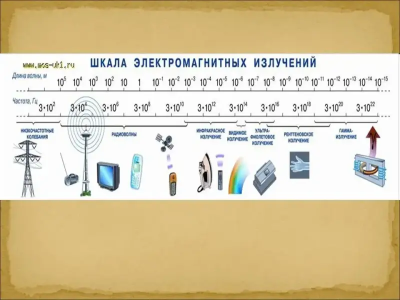 Итак, в природе существуют следующие виды электромагнитных волн: низкочастотное излучение, радиоволны, инфракрасное излучение, свет, ультрафиолетовое излучение, рентгеновское излучение,